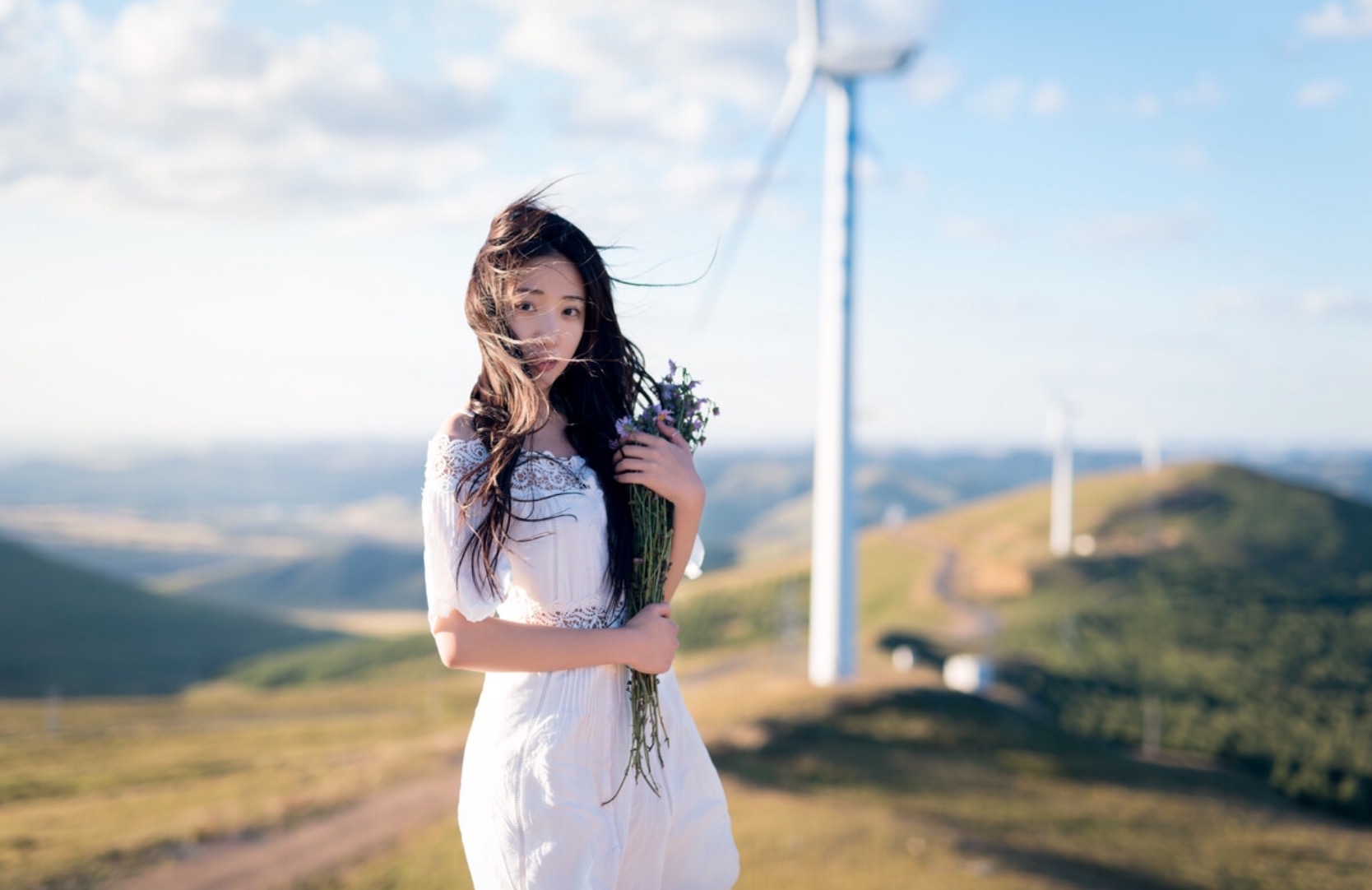 户外拍照,风力是很难控制的要素,经常会遇到头发吹乱的现象,其实这个时候也是拍照的好时机,不要着急去整理头发,不妨多抓拍这个头发凌乱的瞬间,只要多拍,总能拍出虽然凌乱却又不经意的美。