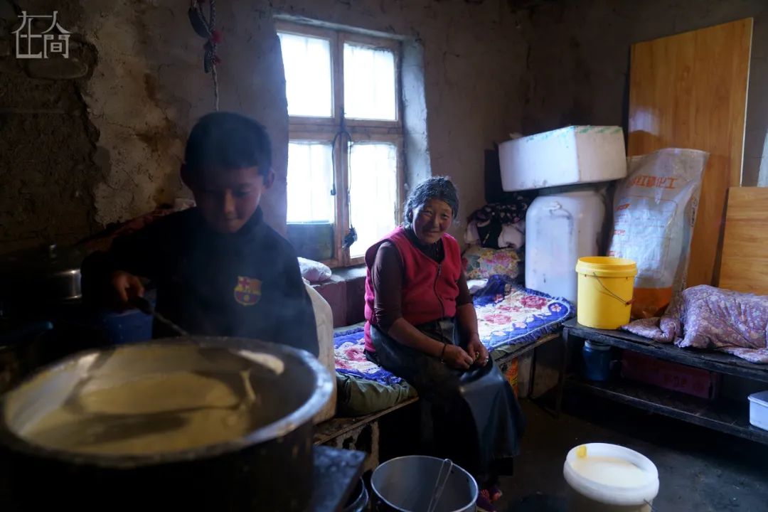 63岁的罗松卓玛家养了两百多头牦牛,酥油成为重要的经济来源。藏族妇女并没有太多就业机会。尤其是家里没有草场的藏族妇女,除了做饭、送孩子上学就没事可做了,不像男人们可以出去打工。
