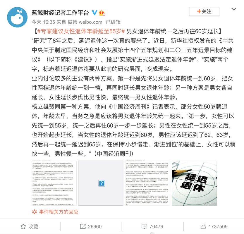 翊小凌:35岁过了找得到工作吗?还延迟到60+?专家是不是从来不考虑普通老百姓?老百姓辛苦一辈子一退休就可以死了是吗?