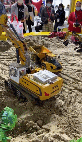 现场看到拖拉机工作的照片,非常炫酷,就像一个缩小版的工地场景,但是体积太大了,不然我都想把它搬回家  ▼