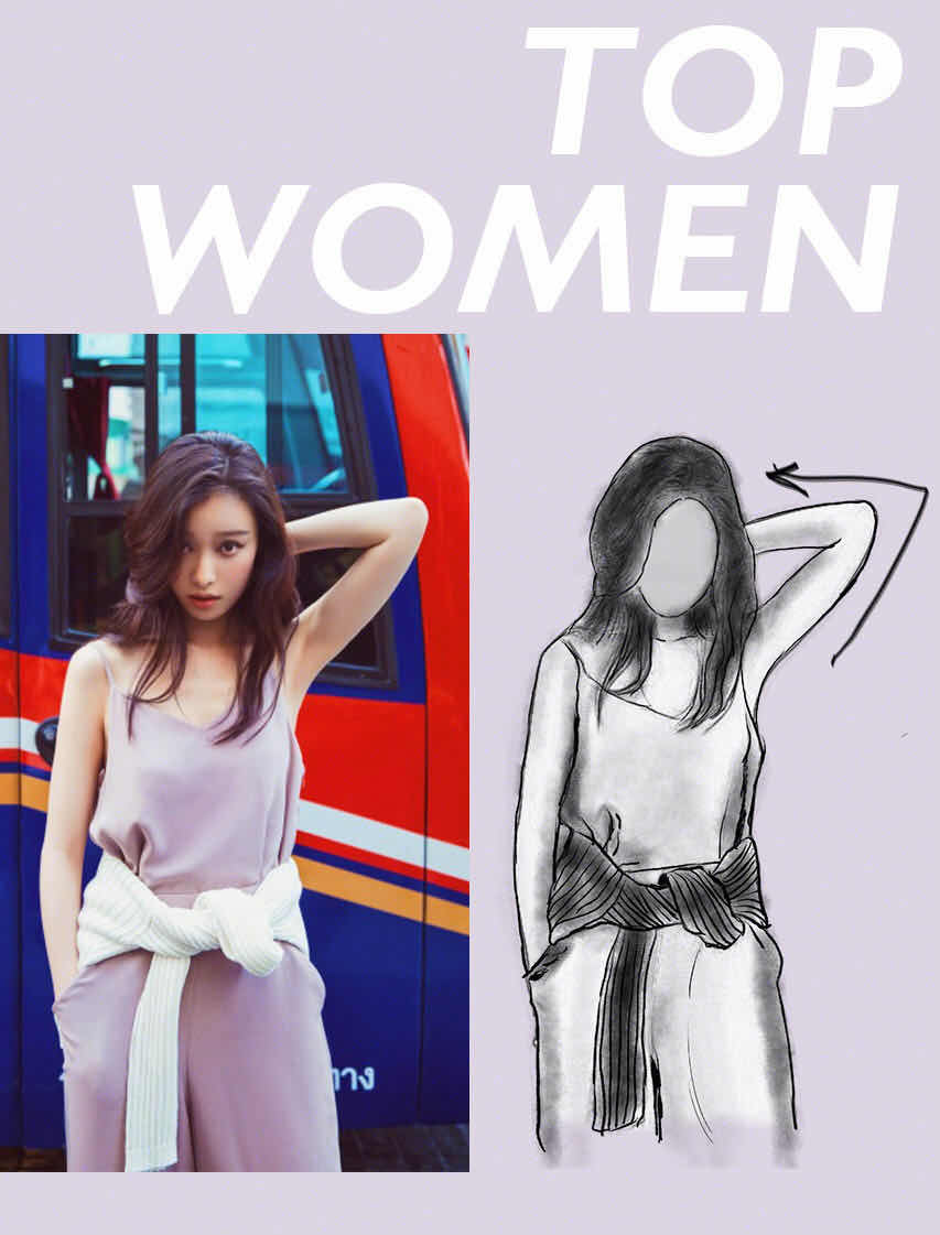 想要摆脱肢体的僵硬,身体上最好能搭配上一些姿势,比如像倪妮这样子,将手放在头后,并稍微低头借助头发来修饰脸型,不仅能显得脸小更有轮廓感还能借助手勾勒出身体自然的曲线,拍照随性又好看。