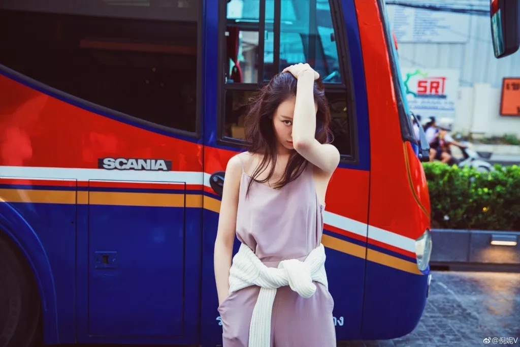 如果你属于脸比较有肉的女生,仰头的姿势可以多拍,不论是拍摄特写还是半身照,大家都可以像倪妮这样子,将头仰起,大约45度,然后再自然地看向镜头,既能避免双下巴,又能突显你精致的五官,也是很实用的拍照技巧。