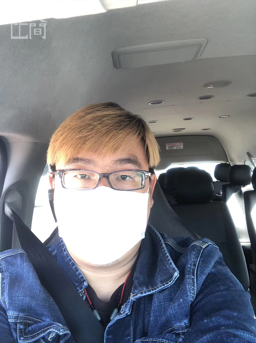 ■ 疫情期间,李旻每天戴口罩接待客户出行。受访者供图