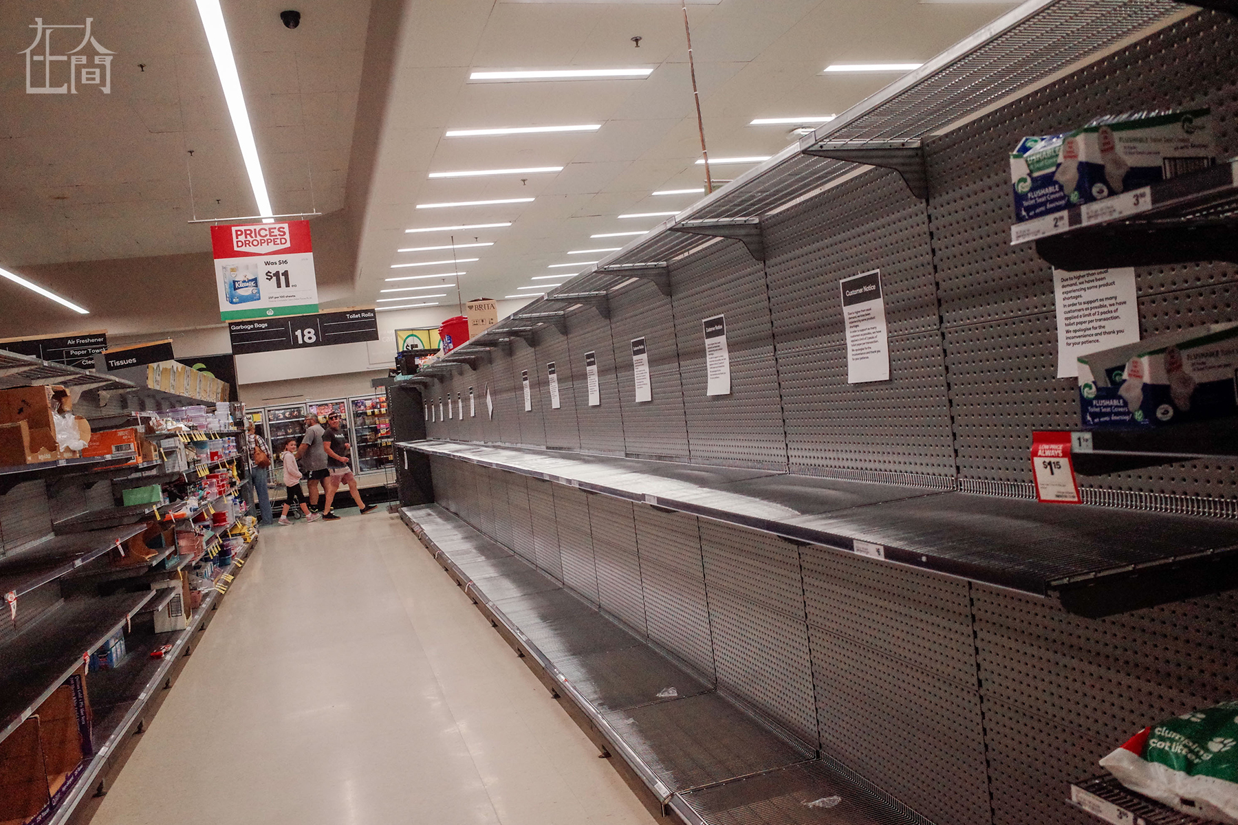 ■ 2020年3月9日,维州东部某镇,超市里的厕纸被抢购一空。直到现在,澳大利亚各大超市的货架最抢手的还是厕纸,一上新就会被买完。黑曼巴/图