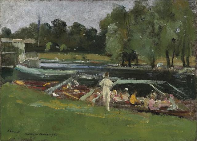与威廉·奥本(William Orpen)一样,拉弗里被任命为第一次世界大战的官方画家。但是,由于身体欠佳,他无法前往西线。齐柏林飞艇轰炸中的一次严重车祸也使他无法担任战争艺术家。他留在英国,主要是画船,飞机和飞艇。在战争年代,他是阿斯奎斯(Asquith)家族的密友,并与他们在萨顿考特尼·泰晤士河畔的住所共度时光,为他们画像和田园诗般的画作,如《河上的夏日》。