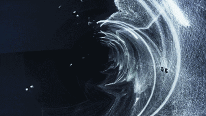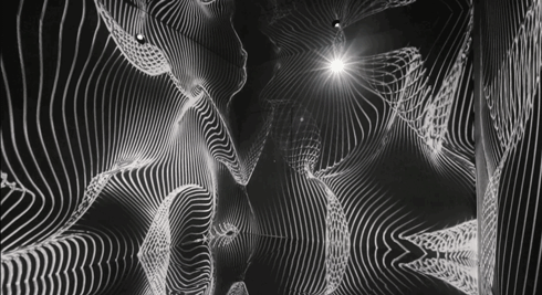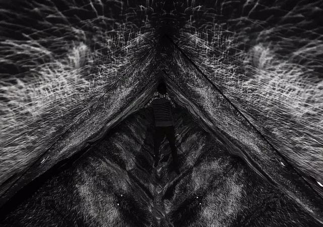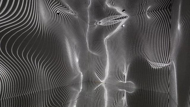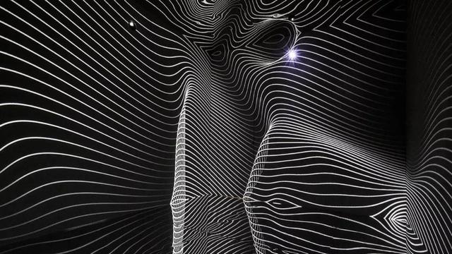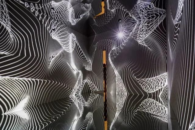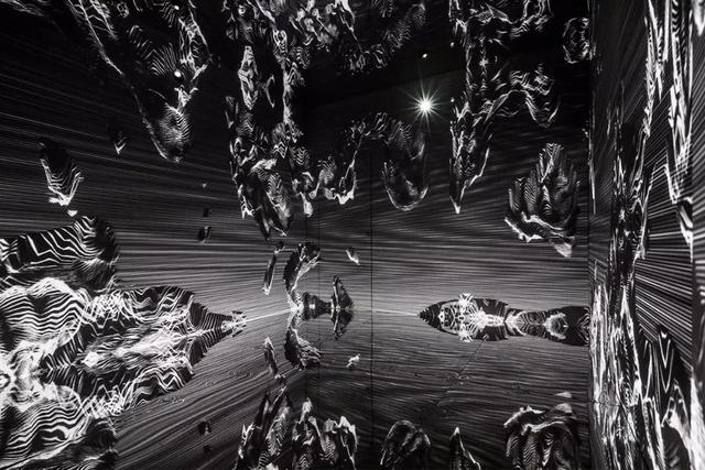 黑白基调的11分钟投影包括螺旋线条、黑洞、枯山水似的动态图像,仿佛一个镜面版的时空隧道。