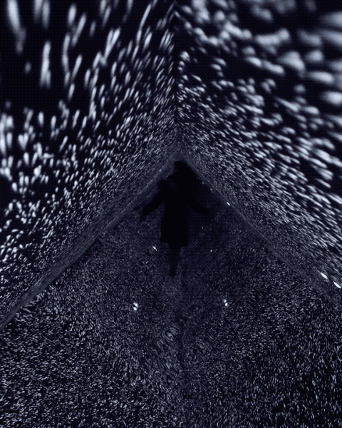 Infinity Room 使用四台投影机进行投影,配上类似呓语的配乐,把观众包裹进这虚幻的空间。