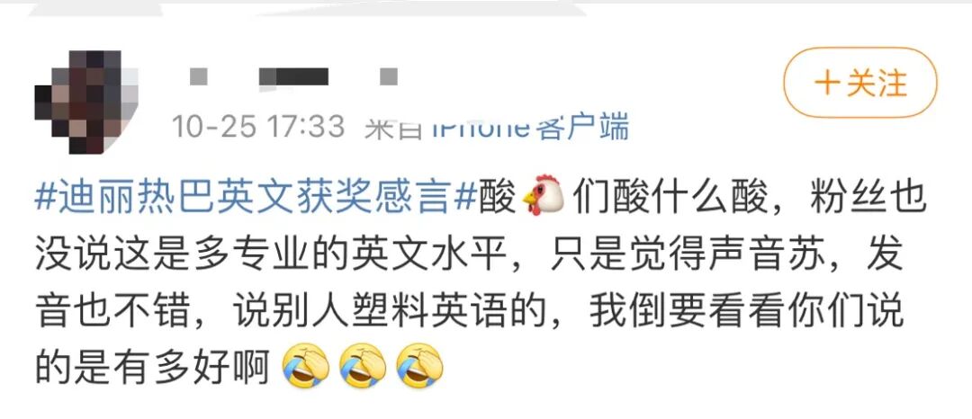 这条微博也让大家不禁想起去年古丽娜扎因为说英语被嘲的事情…