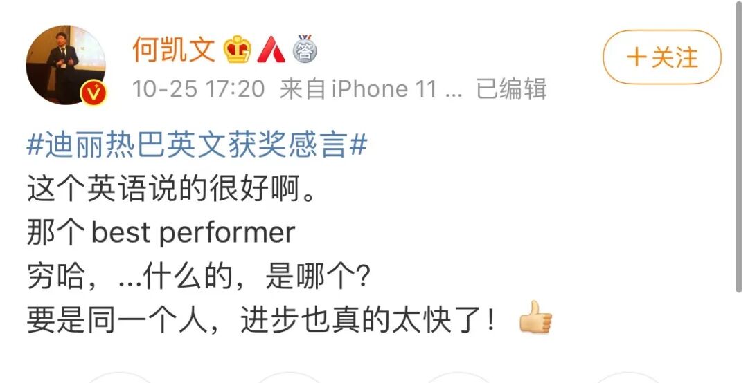 热巴还得到了“考研界英语网红名师“何凯文的肯定: