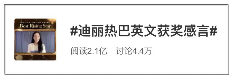 今天,迪丽热巴登上了微博热搜,原因是她在韩国釜山电影节上荣获2020年亚洲内容奖之最佳新星(Asia Contents Awards-Best Rising Star).