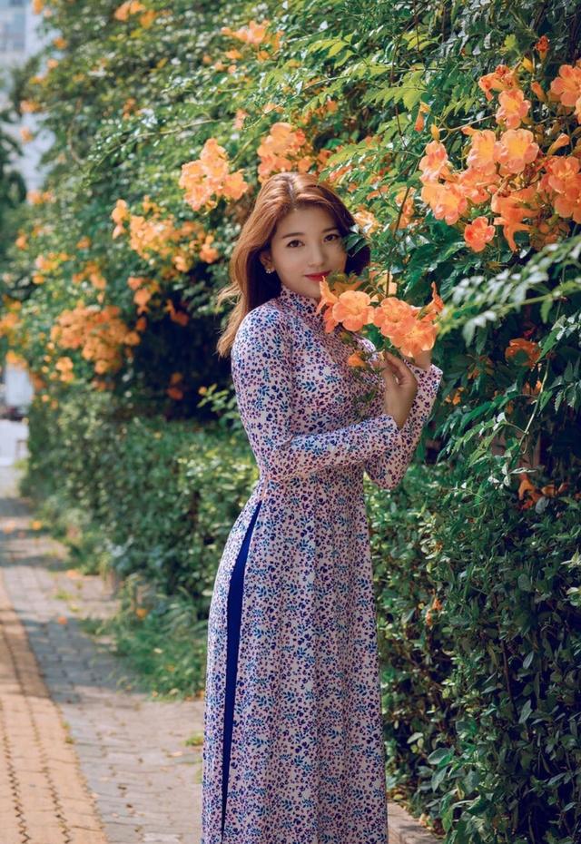 手的摆放位置一直是很多女生的困扰,中年的女士如果想要拍出端正的感觉,和花合影时可以将手往前伸假装去摸花,另外一只手放在腰的位置,这个姿势不仅可以显得身材更加修长,还能尽显优雅,随手拍都好看。