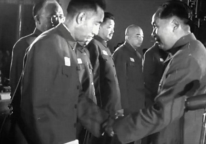 1955年,毛泽东主席在授衔授勋典礼的老照片。