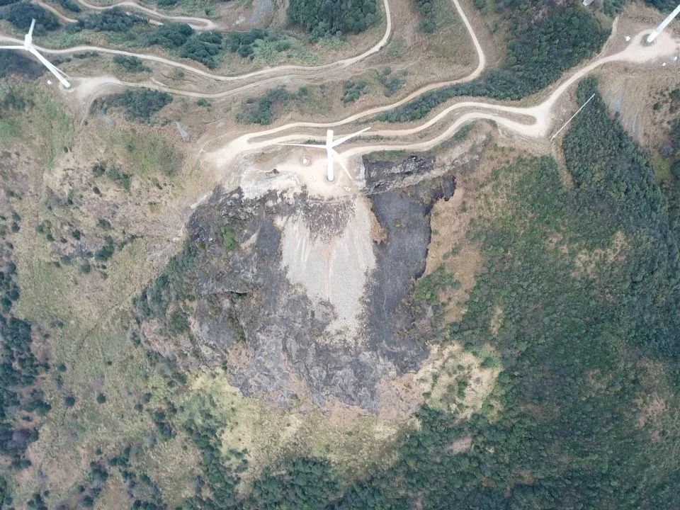用航拍来看这里,一大片都是黑焦色,留下的是被烧毁的痕迹。
