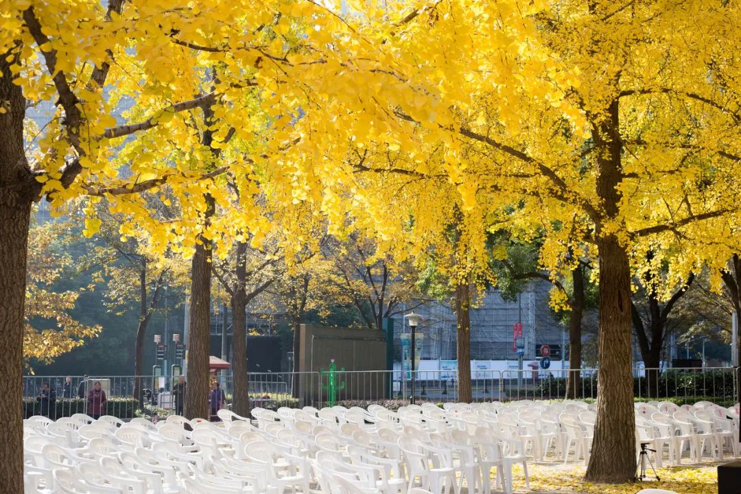 也许你刚结束一场,往南广场西侧漫步,入眼是银杏满地。也许你刚好赶上银杏音乐会,秋风指挥着叶子,音符在漂浮着的银杏中穿梭,交响曲启程。这场秋天与银杏的约会,我准备好了。