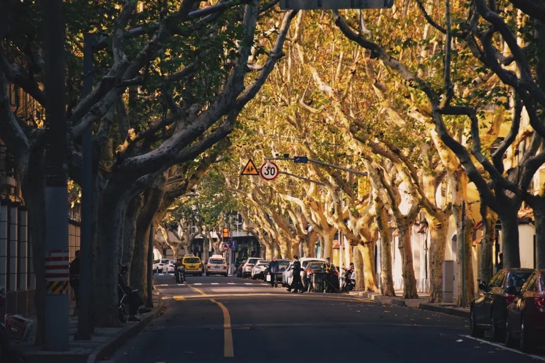 上海秋天的节奏,慢慢来。从现代化的商场,拐进被树木遮天蔽日的上海马路。也有车流,但不鸣笛,只有轮胎驶过柏油路的摩擦声。也有人语,但很安宁,只有老人平静的详谈,与孩子的咿呀。