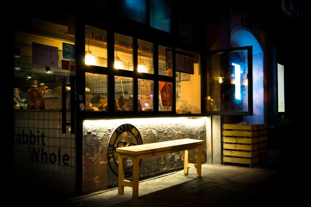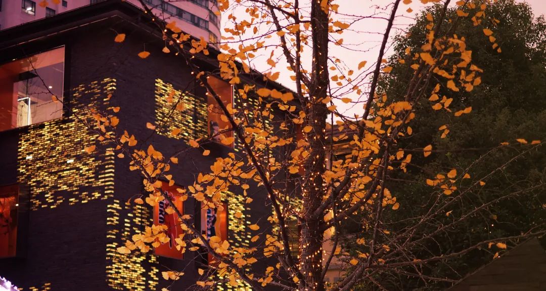 朦胧的夜晚,沉寂了一天的酒吧开始热闹起来,在安静的老梧桐下,欢愉地享受秋夜。在酒吧小酌几杯,喝到微醺后,推开门天是漆黑的,但却散发出一种奇妙的朦胧感。原来深秋已经把这里染成黄色了。