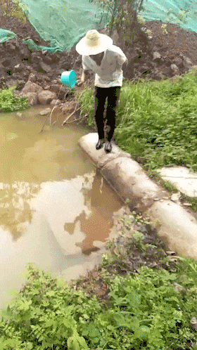 来看看这大哥捕鱼算不算是高手,拿个水瓢就搞定了!