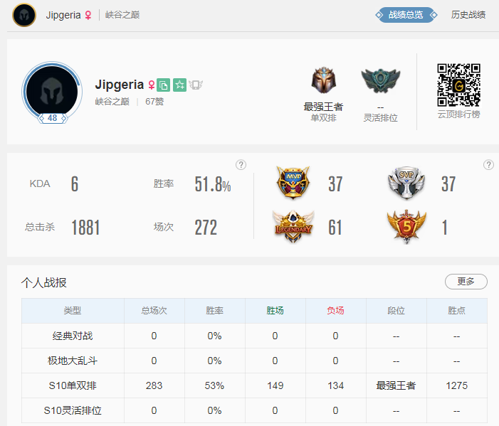 未经允许不得转载:BB姬 » [Gaming Thing]S10世界赛最强路人王诞生:上分如喝水 一个月打上峡谷之巅第二名