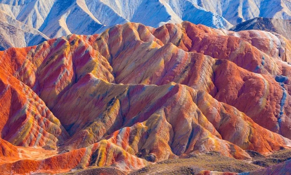 它占地约200平方公里,历经亿万年风化剥离和流水侵蚀,由岩石堆积形成。像是连绵起伏的彩色丝带,又像是鲜艳耀目的中国画,美轮美奂。