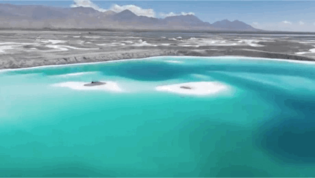 从大柴旦市区驱车20分钟,便能看到翡翠一样的海。它或是墨绿的,或是翠绿的,像玻璃,又像镜子。