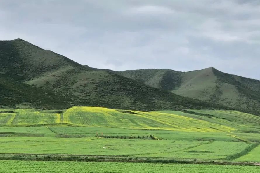从西宁市驱车2.5h便到达了门源市。沿途油菜花海绵延数十公里,远接雪山,近闪金光。在蓝天白云的映衬下,像翻涌的金色海浪,又像飞舞的金色丝带。
