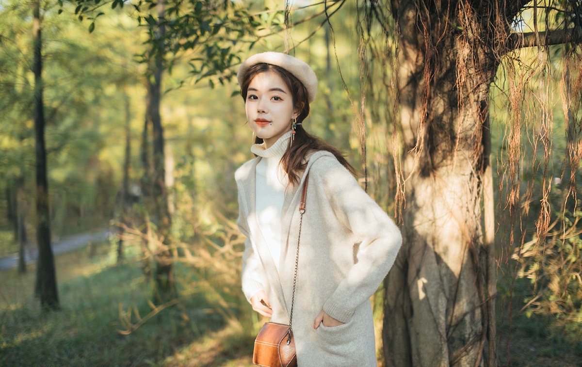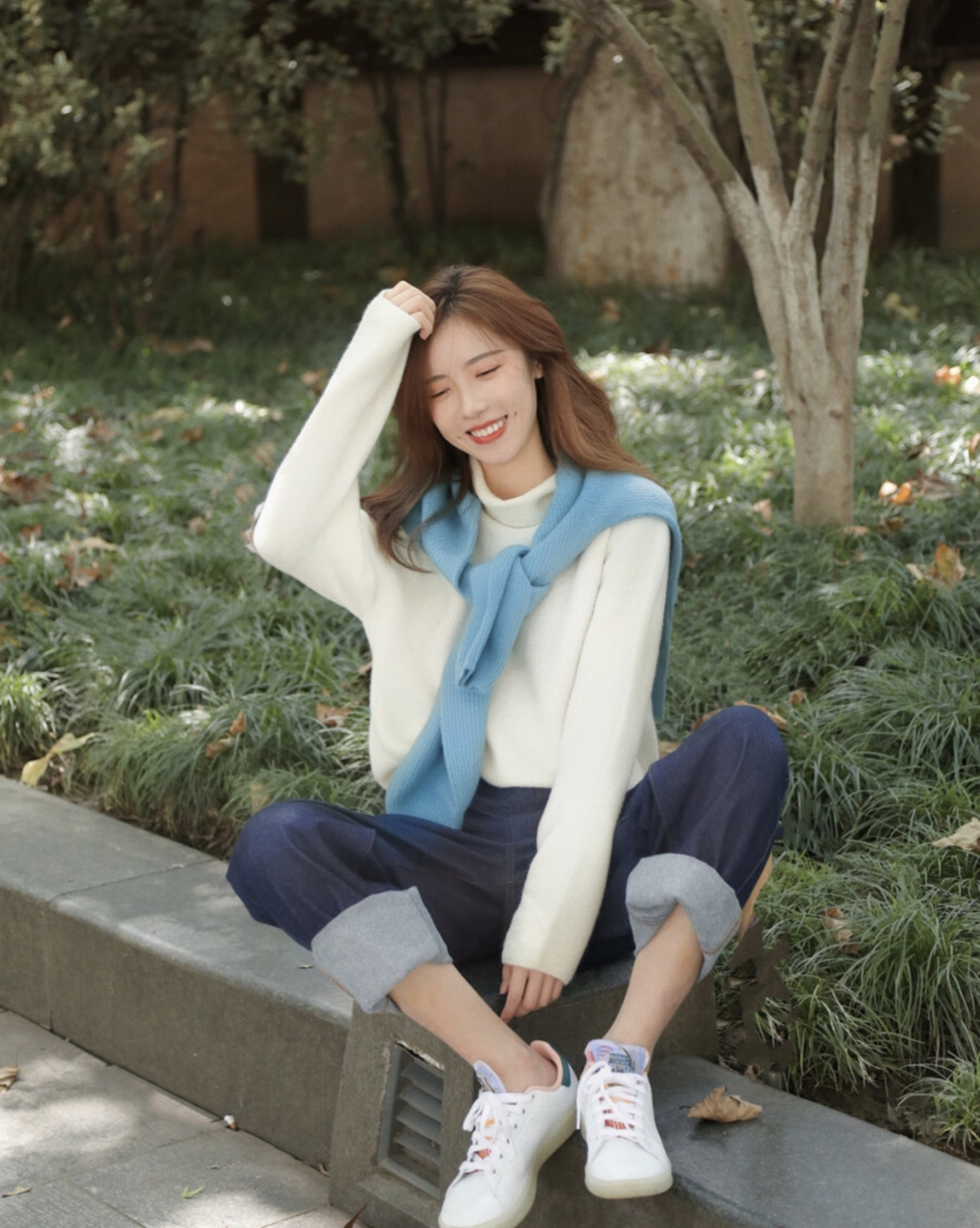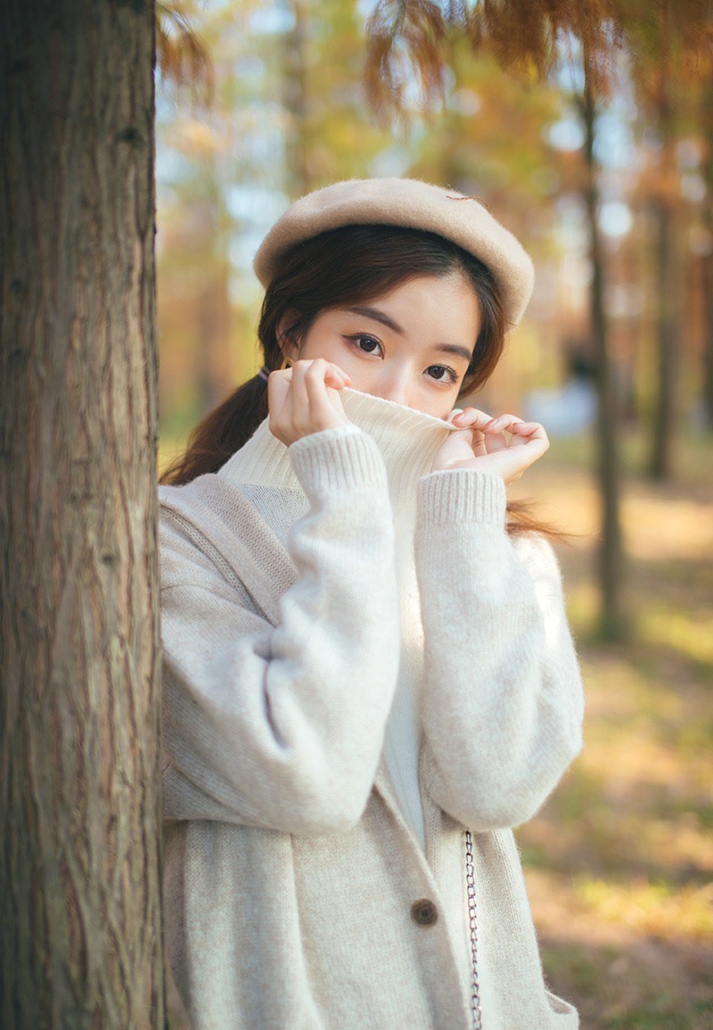 现在天气越来越冷了,各类针织衫和毛衫都穿起来了,想要拍出文艺风,在拍照时你就可以将领子扯高,挡住自己的半边脸,不仅能很好地营造秋意还能显遮挡显脸小,拍照美美的。