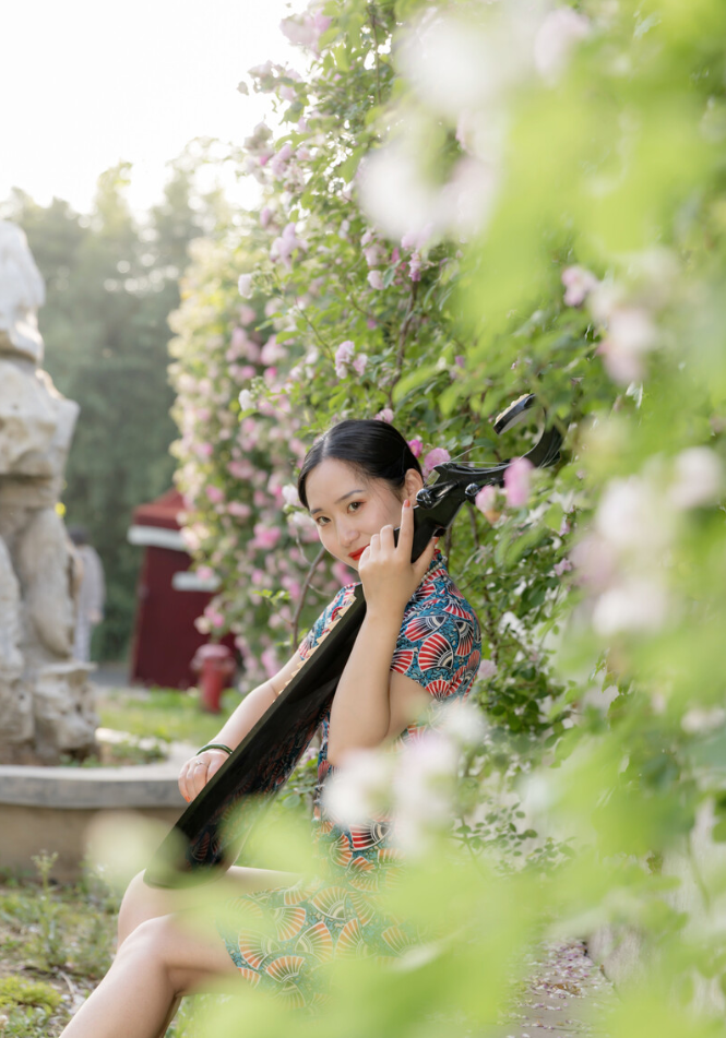 好看的环境,中年女士拍照的时候可以融入进去,比如像下面的这位女士一样,融入到好看的花花草草当中,或者利用花草为前景,虚化前景,这样怎么拍后面的自己都很自然很美。