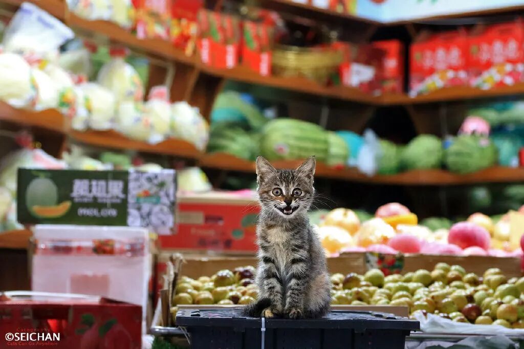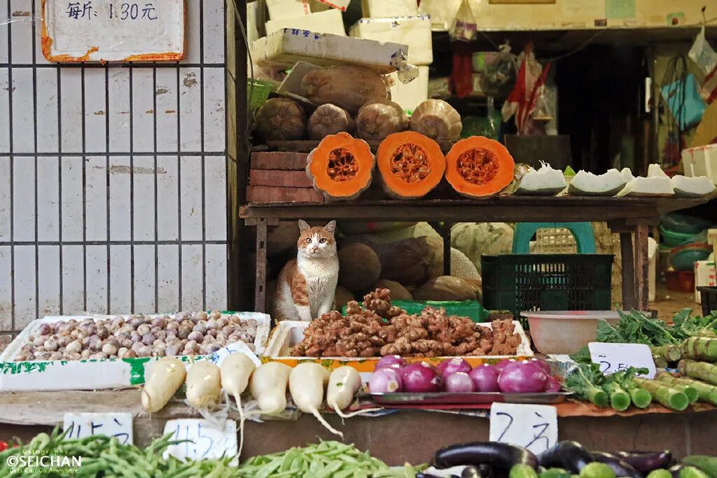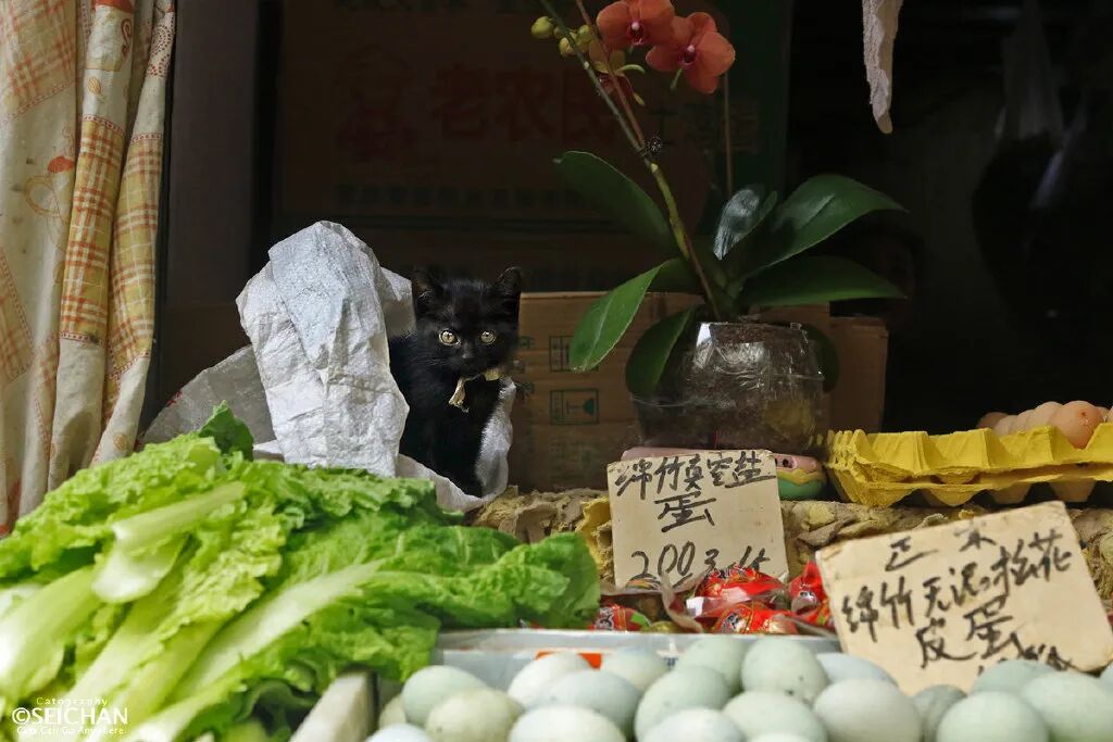 充满烟火气的一组照片:成都菜市场里的“老板喵”(摄影:SEICHAN_)