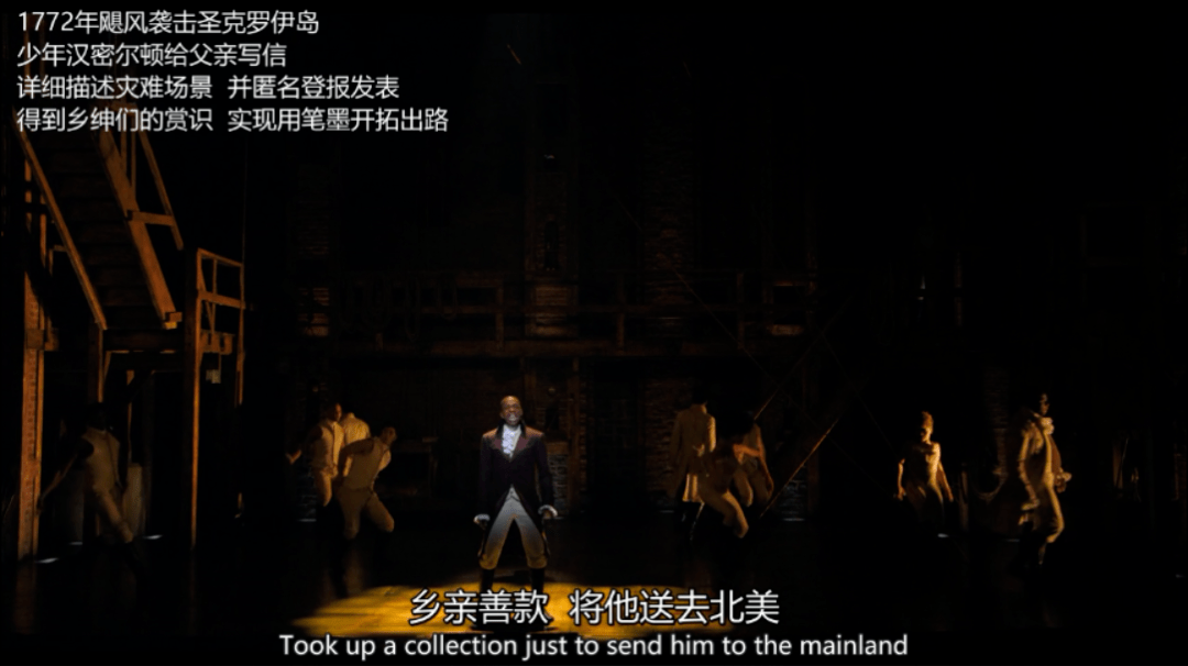 舞台开场,一段伶俐凝练的rap,概述了汉密尔顿早年的经历。