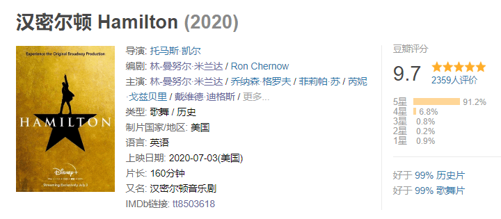 本剧既是一部以汉密尔顿为主人公的个人传记,也同样是一部关于美国诞生与开拓的宏伟史诗。