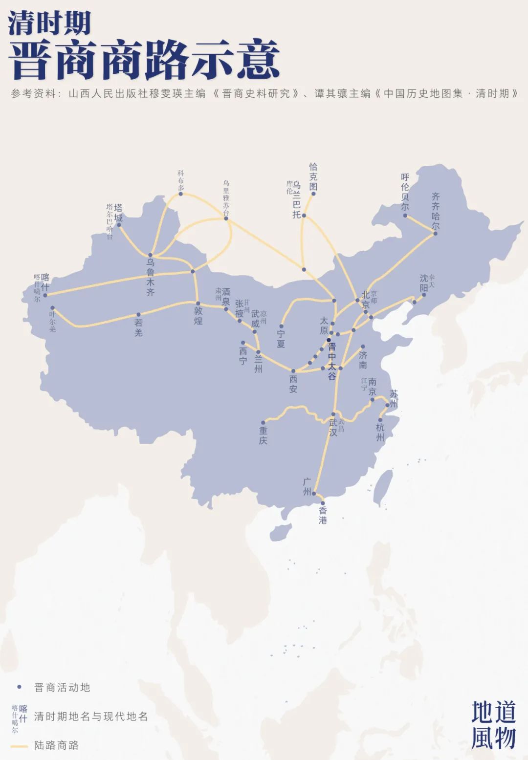 到了清代中后期,经过近四百年的积累,这些山西人将生意做到了全国各地,甚至走出中国,与外国人做起生意。他们以乡土亲缘为纽带,被称为“晋商”。