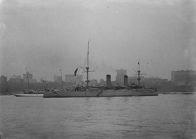 这是1911年8月10日,清朝的海圻号巡洋舰抵达美国纽约港时的老照片,正前方的那个舰艇就是海圻号。从这张老照片可以看出当时的纽约高楼林立,和如今现代化的城市没有什么区别。