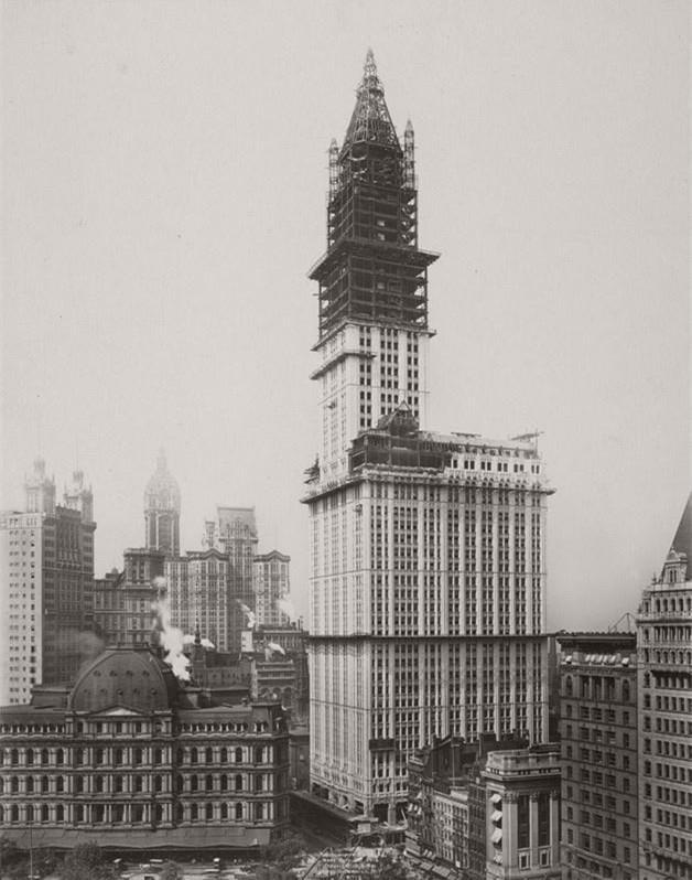 图为1912年高楼林立的美国纽约,正前方那栋即将完工的大楼是伍尔沃斯大楼。这栋大楼于1910年(清宣统二年)开工建设,在1913年建成,大楼高264米,曾是全世界最高的建筑。这栋百年前建造的大楼,用现在的审美来看,也不过时。