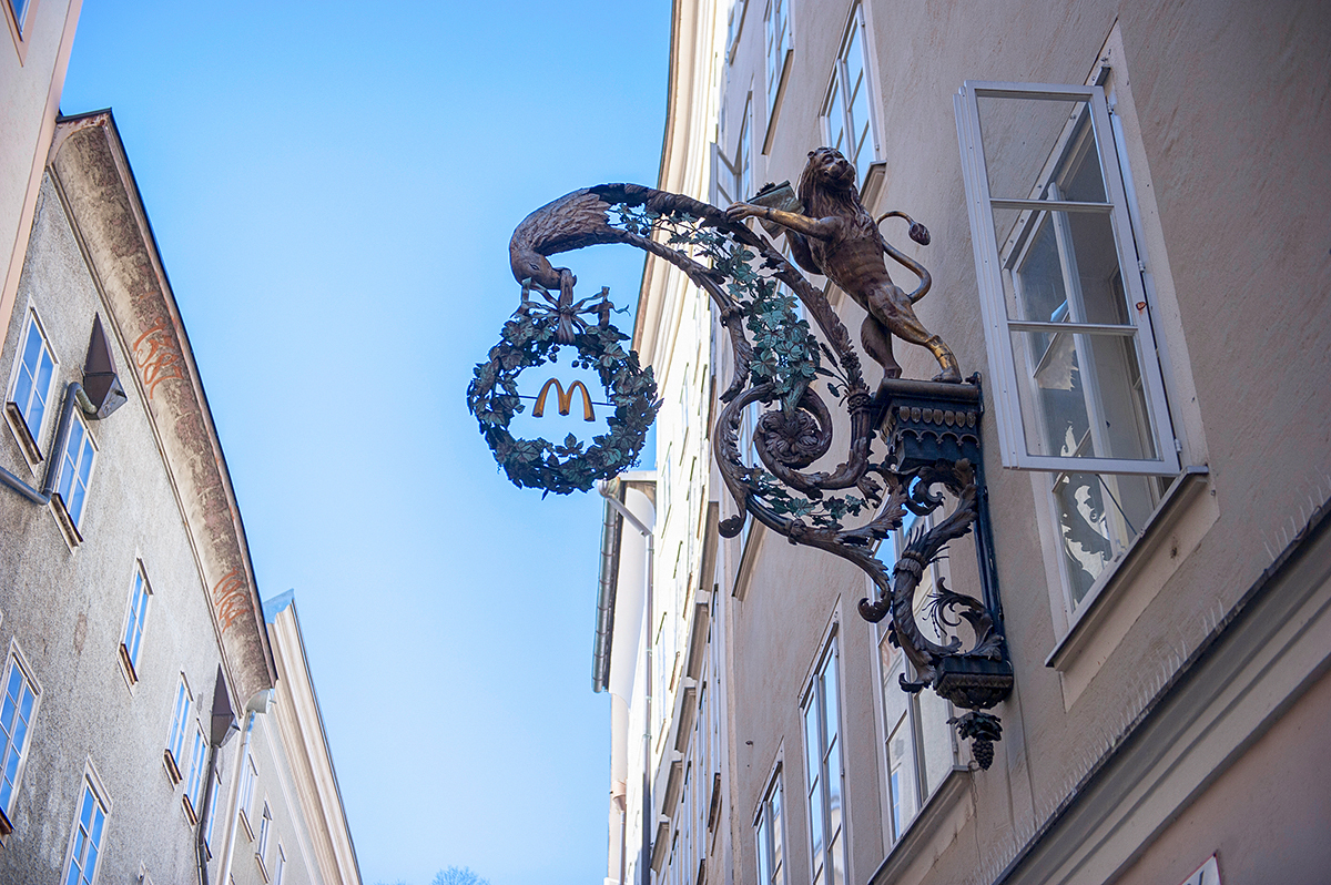 就连麦当劳这样的现代连锁店,也挂上了复古的铸铁招牌,其他LV、ZARA、ZWILLING等等,无不如此,成为一道独特的迷人风景线。