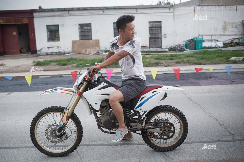 头戴探照灯头盔,李海鹏骑着山地摩托车在收完白菜的空地里驰骋,猎犬追着他头上的探照灯光一同奔跑。李海鹏喜欢养狗,骑摩托车,这在很多村民看来是不务正业的行为。从事中介业务后,越来越忙碌的他没有精力照顾爱犬,就把它寄养在朋友家,结果爱犬不幸去世。
