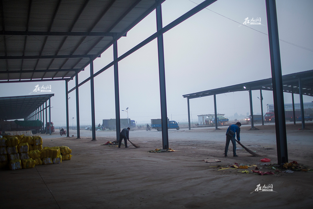 一天的忙碌结束后,李海鹏打扫门面房前的场地。