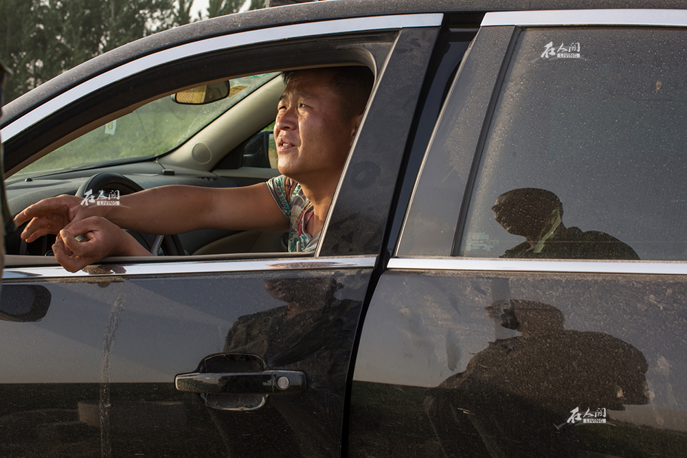2016年,李海鹏从深圳带回的积蓄花光了,他意识到成年后的自己不能再向父母要钱。觉醒到不能再浪荡下去以后,他没有选择外出打工,而是在潘庄周围寻找商机。潘庄村和周边乡村以土豆和白菜为主要经济作物,每到蔬菜收获的时候,很多外地的客商会来收购。双方的交易需要中介环节,在族家叔叔的帮助下,他干上了蔬菜收购中介。图为2016年6月,李海鹏带着从潍坊来的土豆收购商到处看货寻找收购点,并作为中间人协调价格。如果买卖达成,李海鹏就协助商贩雇人收货、发货,从中赚取服务费。