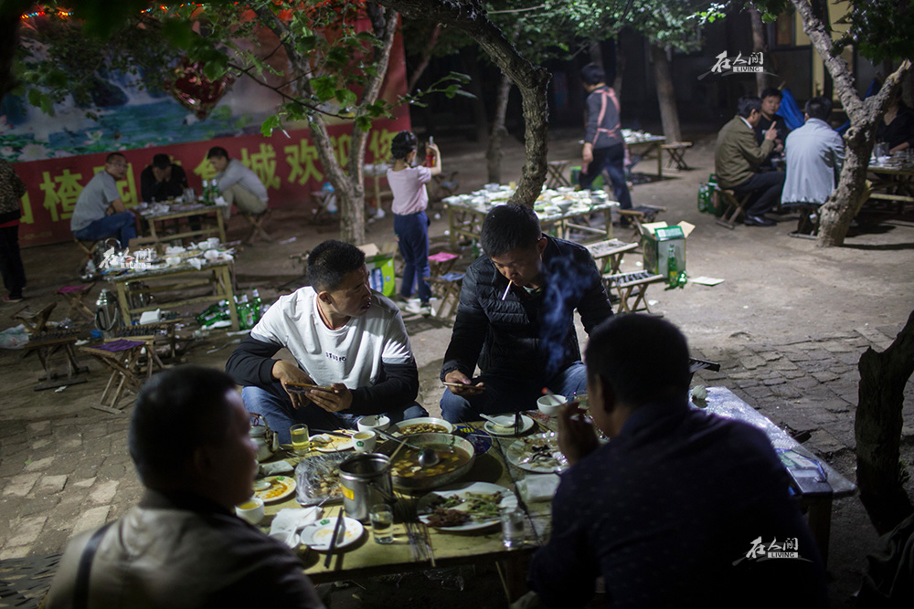 白菜和土豆是当地的主要经济作物,所以每一个村民都是海鹏的潜在客户。菜农们也希望把自家的蔬菜卖给熟识的人,这样更令他们放心。图为获得菜款后,农户请李海鹏和他的合伙人吃饭表示感谢。