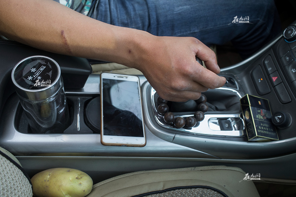 谈好价格,李海鹏带着一个样品土豆开车离开,他的手指上还残留着看货时沾上的泥土,胳膊上的刀疤是从前在深圳打架时留下的。在从事这个行业一年多的时间里,李海鹏行车里程表上的数字已经超过4万公里,期间也曾发生过小事故。