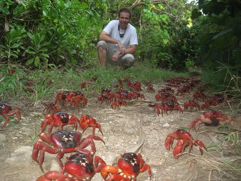 圣诞岛上著名的景观,繁殖迁徙的红蟹(Gecarcoidea natalis)。图片:Ian Usher / Wikimedia Commons