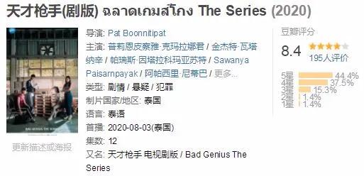 只花了50万美元买回来的《天才枪手》,在中国却火成了一部票房爆款,全靠出色的口碑,《天才枪手》豆瓣评分为8.2分。
