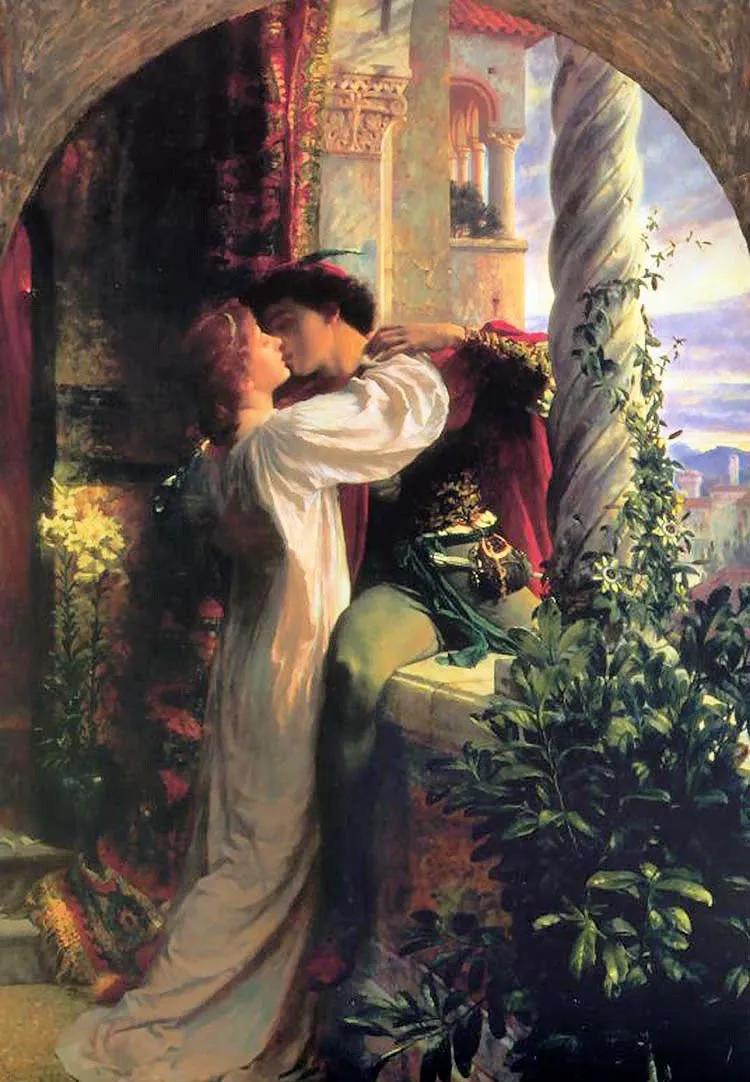 描绘罗密欧与朱丽叶的画作有很多,但只有拉斐尔前派画家迪克西的这幅,最为柔肠百结、细腻动人。阳台上的深情拥吻好像穿越时空,试问谁又可以拒绝呢?