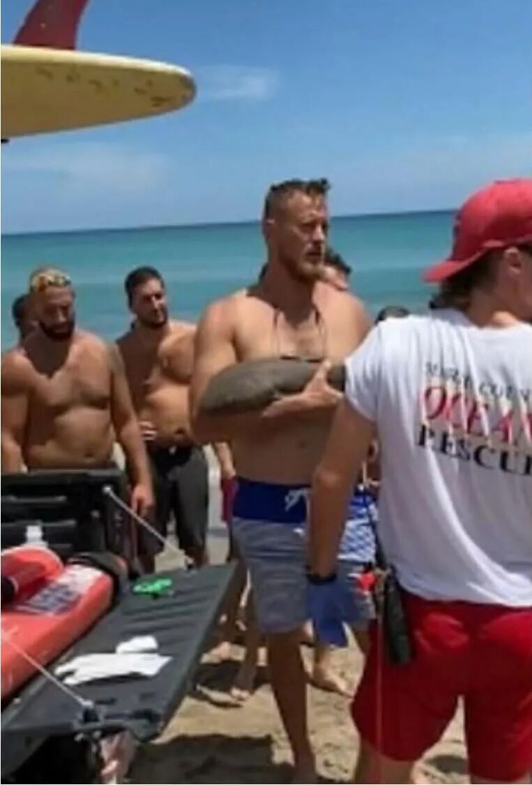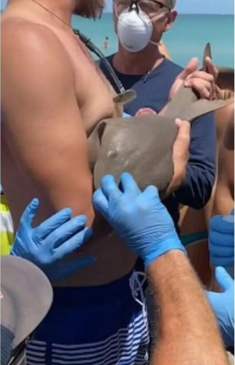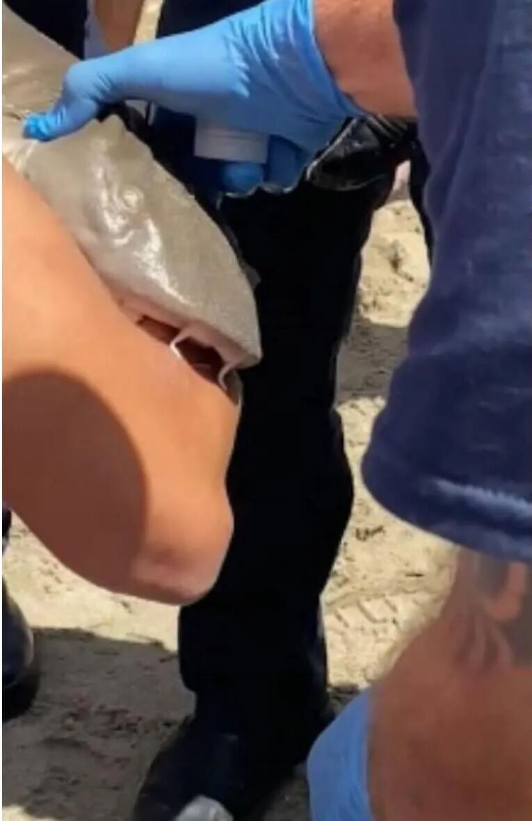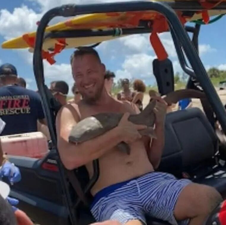 不过直到救援人员处理完毕,这哥们都温柔淡定地抱着鲨鱼,还有说有笑