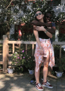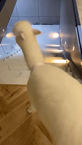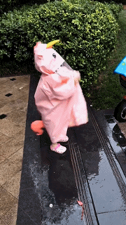 妈妈说雨衣太长了,下台阶要把雨衣提起来