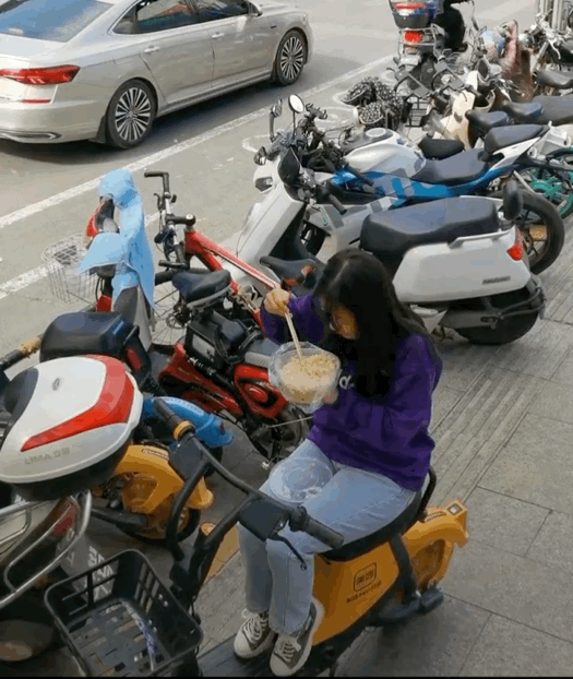 大口大口扒拉着刚买的饭
