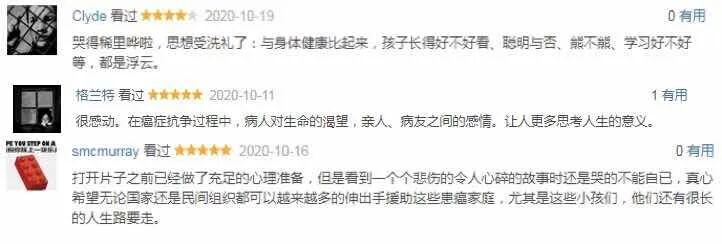本片记录了16个真实的抗癌故事。没有刻意的煽情催泪,仍然让大家「感动」「泪奔」「哭得稀里哗啦」。