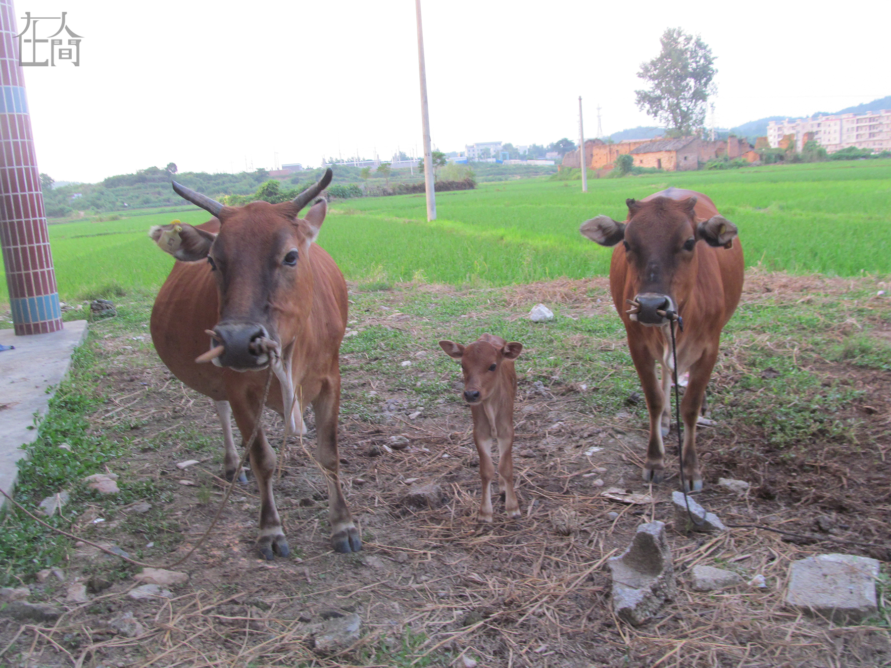 这是爷爷养的牛,它们都看着镜头,酷吧!左边的是大母牛,右边两头都是她女儿。大母牛今年12岁了,是爷爷奶奶花了800多块钱买的。大母牛脾气不好,会把绳子弄断,跑到外面去。有一次她跑了,三天三夜没有回来,不过最后还是自己认着路回来了。大母牛生过很多小牛,不过都被爷爷奶奶卖了,去年卖了一头牛,卖了2500块钱。中间那头小牛是前几天刚出生的,那天晚上爷爷睡不着觉,一直守着大母牛,小牛生出来后,爷爷特别高兴。