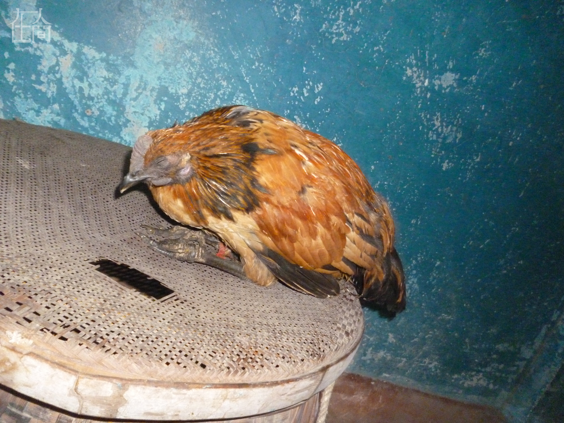 这只鸡快死掉了,我很喜欢这只鸡,就给它拍了一张。之前有十几只鸡的,奶奶本来想留到过年吃的,可是都死掉了。