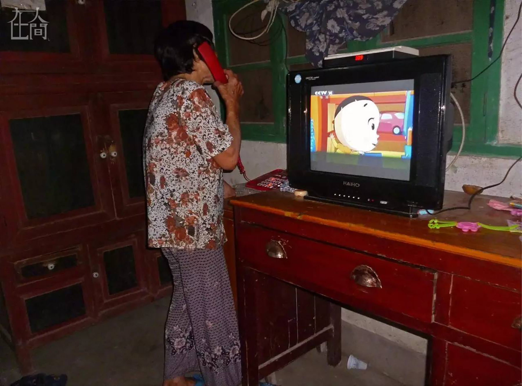 我姑姑打电话问奶奶的病怎么样了,好了一些吗?奶奶有高血压,四月份住院住了十五天。电视里放的是我弟弟正在看的动画片。
