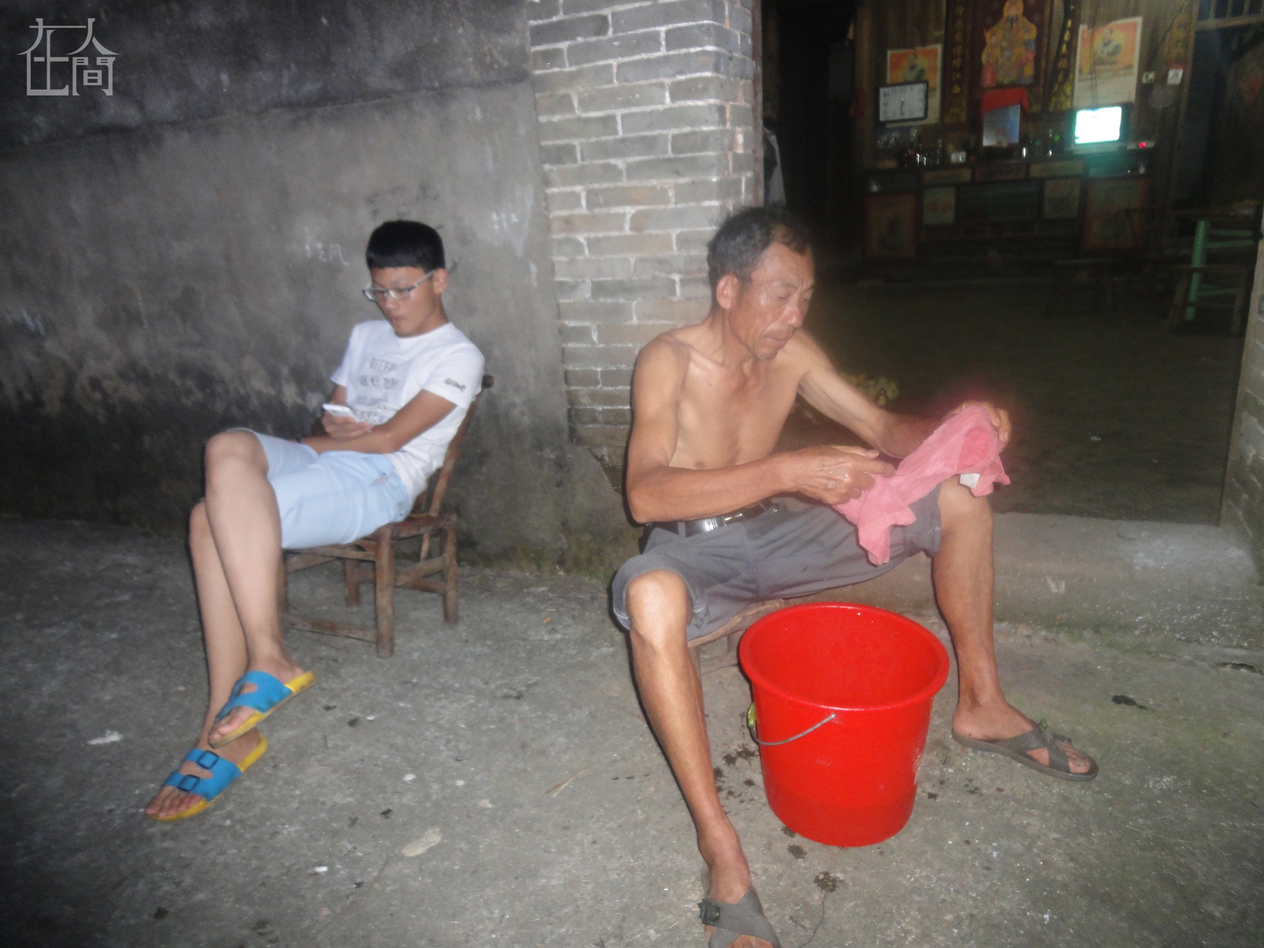 这是我爷爷和我堂哥在外面乘凉,哥哥的爸妈在吉安开饭馆。
